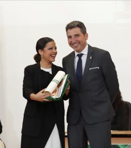Y En febrero de 2019, recibe a nivel provincial la BANDERA DE ANDALUCÍA, un galardón que pone en Conocimiento la larga trayectoria y nivel de la artista onubense.